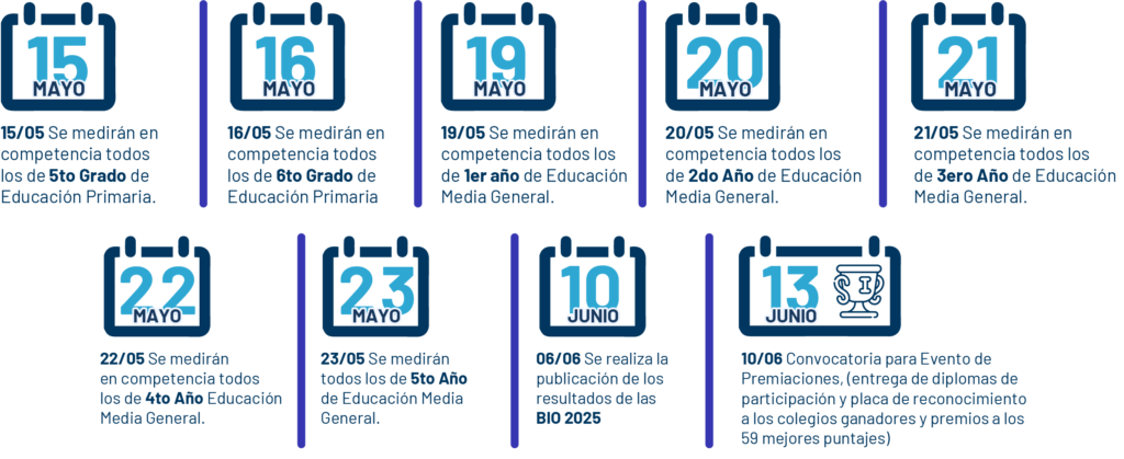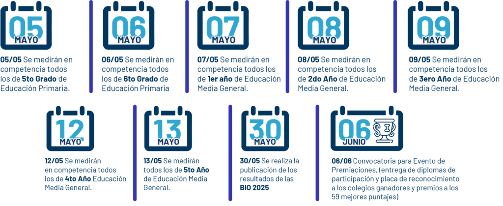 Actividades distribuidas en un programa de 7 días para que todos los grados presenten sus pruebas